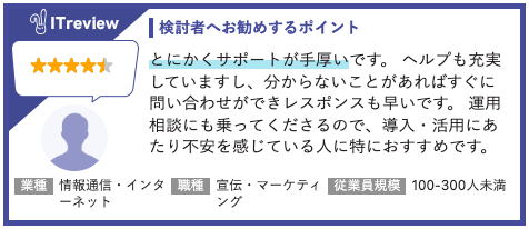 最高評価の「サポート」で導入から施策の実行まで伴走支援